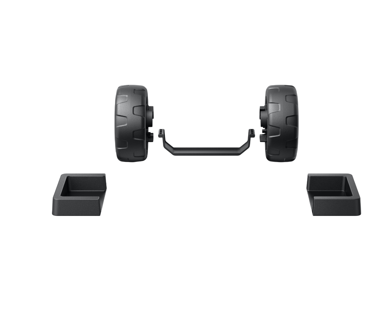 Dans la boîte : Une paire de roues de plage, un support de réglage, une paire de cales de plage.